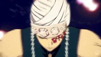 - 유곽편: 음주 우즈이 텐겐이 탄지로, 젠이츠, 이노스케와 함께 상현 6 남매(다키·규타로)를 쓰러뜨림. 팀워크와 희생의 결정판.