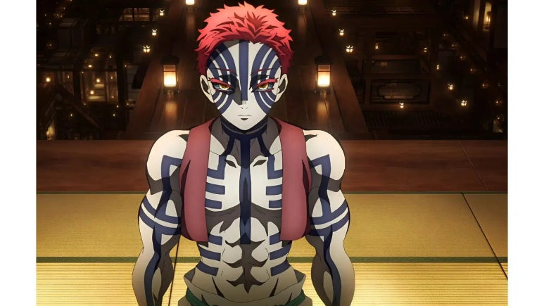 - 아카자(상현3): 근접 격투 특화. 혈귀술 ‘파괴살’과 ‘나침반 감지’. 무한성에서 탄지로·기유와 격돌.